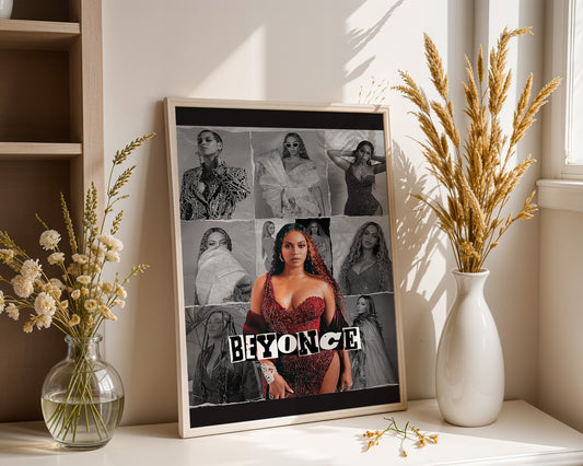 Beyoncé - Affiche Collage Noir & Blanc avec Détail Couleur
