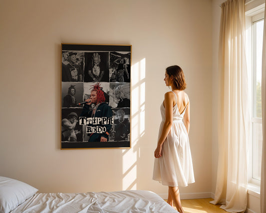 Trippie Redd - Affiche Collage Noir & Blanc avec Détail Couleur Rouge
