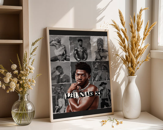 Lil Nas X - Affiche Collage Noir & Blanc avec Style Rétro et Portrait Coloré